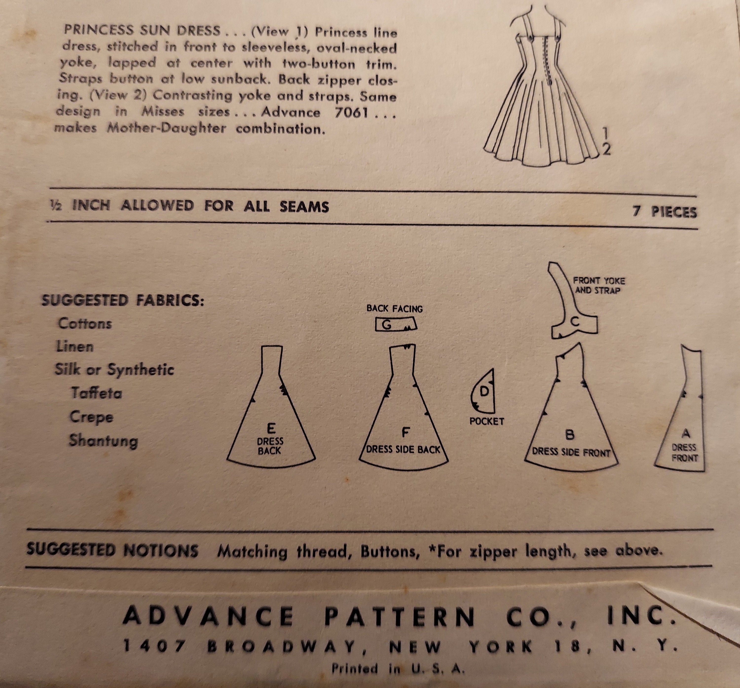 Buy Vintage 1950s Advance Patterns 7062 8389 Girls One Piece Online In India Etsy